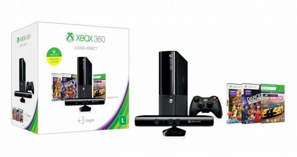 Console Xbox 360 Super Slim 250GB com Kinect e 3 jogos